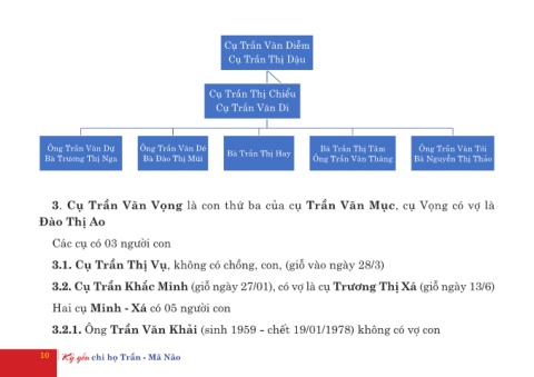3. Cụ Trần Văn Vọng là con thứ ba của cụ Trần Văn Mục, cụ Vọng có vợ là