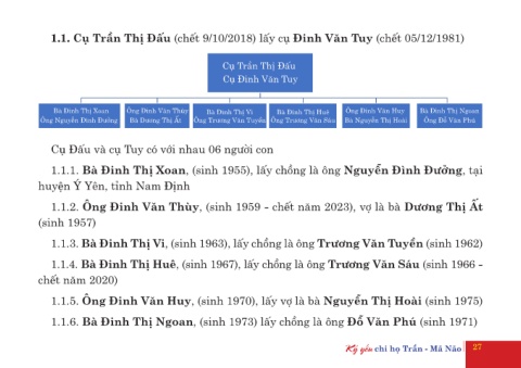 1.1. Cụ Trần Thị Đấu (chết 9/10/2018) lấy cụ Đinh Văn Tuy (chết 05/12/1981)
