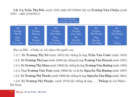 1.2. Cụ Trần Thị Đốc (sinh 1934 chết 23/7/2004) lấy cụ Trương Văn Chiện (sinh