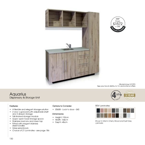 • Fitted with elegant stainless Laminate • Choice of 21 Laminates - see page 186 Dimensions: