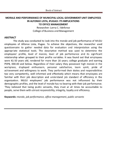 ABSTRACT The study was conducted to look into the morale and job performance of MLGU