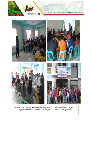 Stakeholders’ Meeting done at the Campus RDET Office participated by College representatives and spearheaded by RDET Campus Chairpersons.