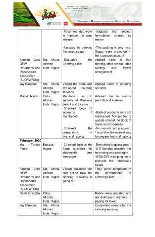 Joy Banatao Sta. Maria, Visited the store and Applied skills in catering