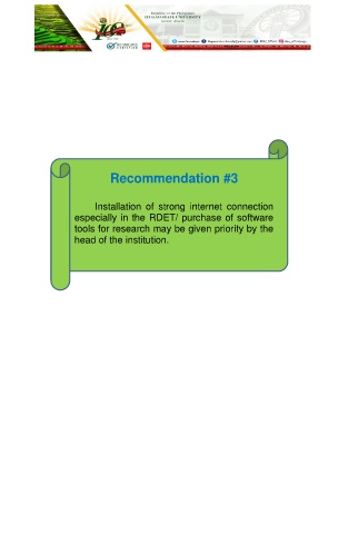 Recommendation #3 Installation of strong internet connection especially in the RDET/ purchase of software tools for research may be given priority by the head of the institution.