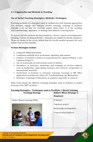 thinking, various teaching methods / strategies are utilized by faculty members.