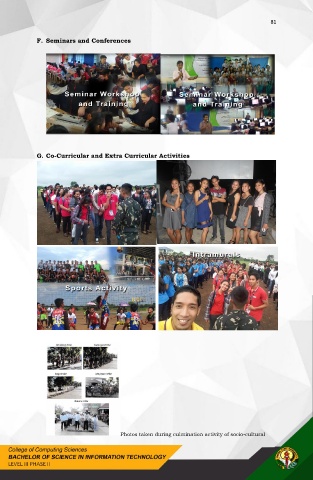 81 F. Seminars and Conferences G. Co-Curricular and Extra Curricular Activities Photos taken during culmination activity of socio-cultural