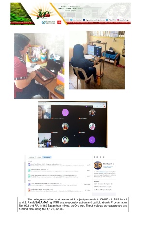 The college submitted and presented 2 project proposals to CHED – 1. SPA for eJ