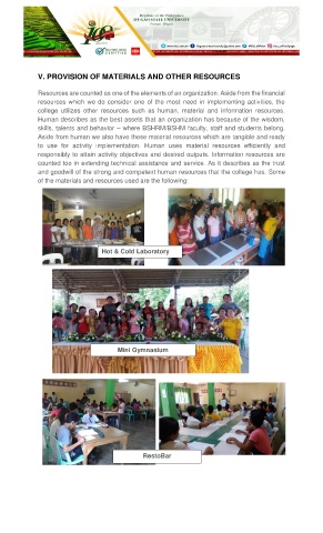 V. PROVISION OF MATERIALS AND OTHER RESOURCES