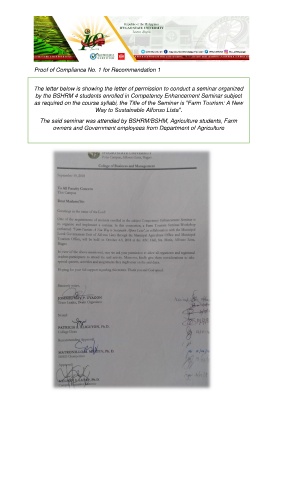 Proof of Compliance No. 1 for Recommendation 1