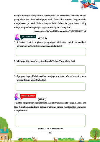 1. Sebutkan  contoh  kegiatan  yang  dapat  dilakukan  untuk  mensyukuri