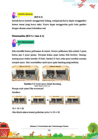 menjadi ayam. Edu memisahkan anak ayam pada kandang yang berbeda.