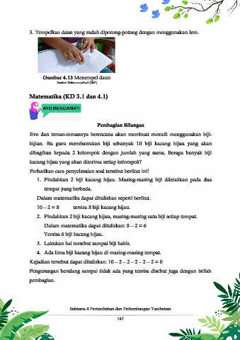10 – 2 = 8 tersisa 8 biji kacang hijau.
