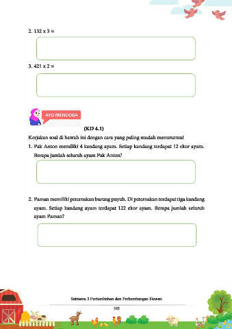 1. Pak Anton memiliki 4 kandang ayam. Setiap kandang terdapat 12 ekor ayam.