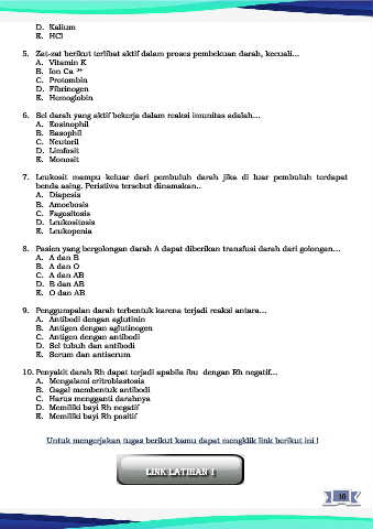 6. Sel darah yang aktif bekerja dalam reaksi imunitas adalah…