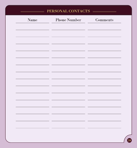 PERSONAL CONTACTS Name Phone Number Comments 39 38