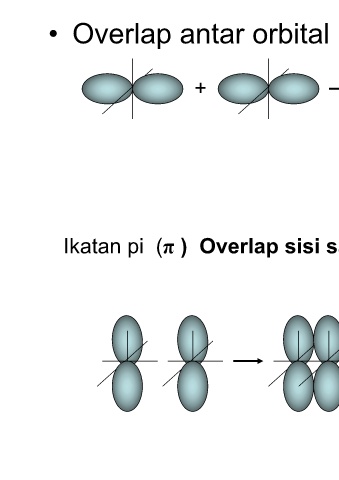 • Overlap antar orbital p + Ikatan pi (π ) Overlap sisi samping