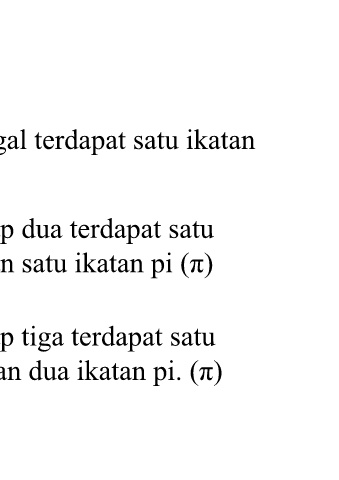 KESIMPULAN 1. Pada ikatan tunnggal terdapat satu ikatan sigma (σ) 2. Pada ikatan rangkap dua terdapat satu ikatan sigma (σ) dan satu ikatan pi (π) 3. Pada ikatan rangkap tiga terdapat satu ikatan sigma (σ) dan dua ikatan pi. (π)