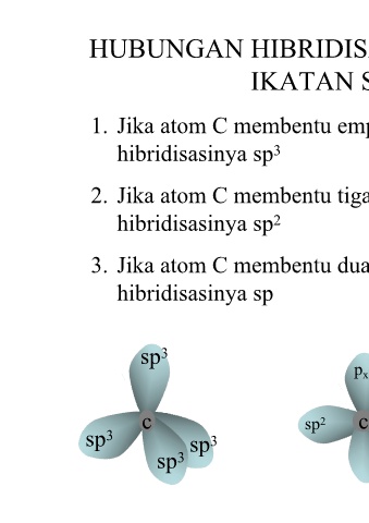2. Jika atom C membentu tiga ikatan sigma maka tipe