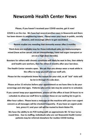 Page 3 - Town of Newcomb Newsletter - September October 2021