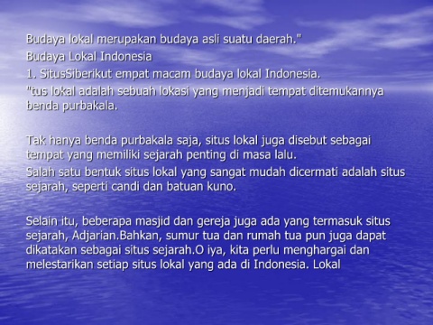 melestarikan setiap situs lokal yang ada di Indonesia. Lokal