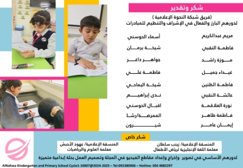 AlNahwa Kindergarten and Primary School Cycle1-10007@2024-2025 – Tel:092380906 – Hotline: 050 4882297