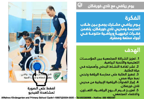 المدرسة ومدربي نادي خورفكان ،يتضمن