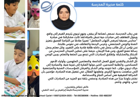 AlNahwa Kindergarten and Primary School Cycle1-10007@2024-2025 – Tel:092380906 – Hotline: 050 4882297