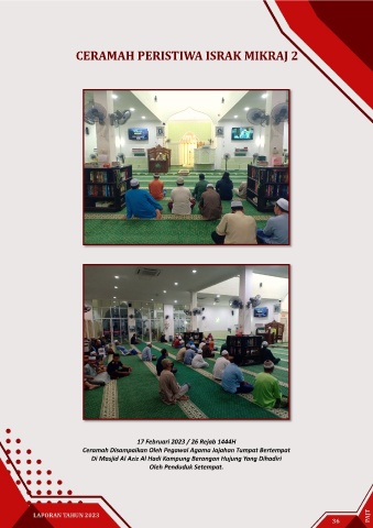 CERAMAH PERISTIWA ISRAK MIKRAJ 2 17 Februari 2023 / 26 Rejab 1444H Ceramah Disampaikan Oleh Pegawai Agama Jajahan Tumpat Bertempat Di Masjid Al Aziz Al Hadi Kampung Berangan Hujung Yang Dihadiri Oleh Penduduk Setempat. PAJT LAPORAN TAHUN 2023 36