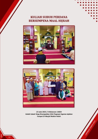 KULIAH SUBUH PERDANA BERSEMPENA MAAL HIJRAH 22 Julai 2023 / 4 Muharam 1445H Kuliah Subuh Yang Disampaikan Oleh Pegawai Agama Jajahan Tumpat Di Masjid Mukim Paloh. 53 PAJT