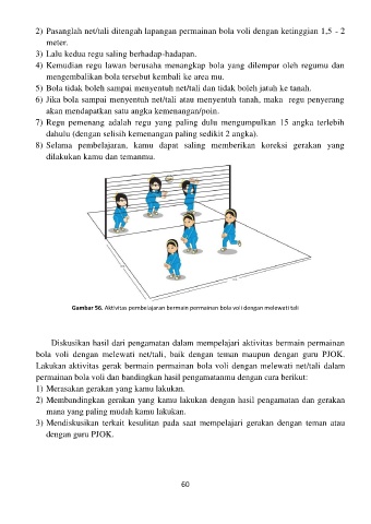 Gambar 56. Aktivitas pembelajaran bermain permainan bola voli dengan melewati tali