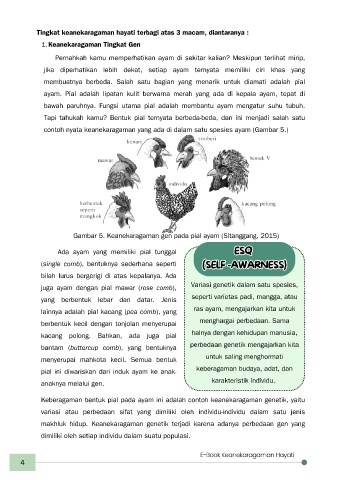 contoh nyata keanekaragaman yang ada di dalam satu spesies ayam (Gambar 5.)