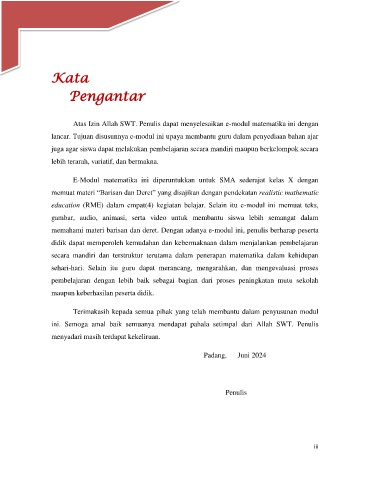 memahami materi barisan dan deret. Dengan adanya e-modul ini, penulis berharap peserta