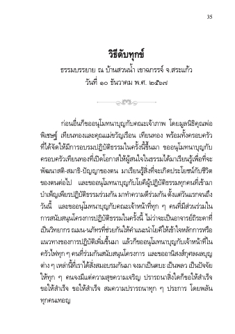 ก่อนอื่นก็ขออนุโมทนําบุญกับคณะเจ้ําภําพ โดยมูลนิธิคุณพ่อ พิเชษฐ์ เทียนทองและคุณแม่ขวัญเรือน เทียนทอง พร้อมท้ังครอบครัว ที่ได้จัดให้มีกํารอบรมปฏิบัติธรรมในครั้งนี้ขึ้นมํา ขออนุโมทนําบุญกับ ครอบครัวเทียนทองที่เปิดโอกําสให้ผู้สนใจในธรรมได้มําเรียนรู้เพื่อที่จะ พัฒนําสติ-สมําธิ-ปัญญําของตน มําเรียนรู้ส่ิงท่ีจะเกิดประโยชน์กับชีวิต ของตนต่อไป และขออนุโมทนําบุญกับโยคีผู้ปฏิบัติธรรมทุกคนท่ีเข้ํามํา บํา เพญ็ เพยี รปฏบิ ตั ธิ รรมรว่ มกนั มําทํา ควํามดรี ว่ มกนั ตงั้ แตว่ นั แรกจนถงึ วันนี้ และขออนุโมทนําบุญกับคณะเจ้ําหน้ําที่ทุก ๆ คนท่ีมีส่วนร่วมใน กํารสนับสนุนโครงกํารปฏิบัติธรรมในครั้งนี้ ไม่ว่ําจะเป็นอําจํารย์ถิระดําที่ เปน็ วทิ ยํากร ณมน-นภทั รทชี่ ว่ ยกนั ใหค้ ํา แนะนํา โยคใี หเ้ ขํา้ ใจหลกั กํารหรอื แนวทํางของกํารปฏิบัติเพ่ิมขึ้นมํา แล้วก็ขออนุโมทนําบุญกับเจ้ําหน้ําที่ใน ครวั ไฟทกุ ๆ คนทรี่ ว่ มกนั สนบั สนนุ โครงกําร และขออํานสิ งสก์ ศุ ลผลบญุ ตํา่ ง ๆ เหลํา่ นท้ี เี่ รําไดส้ งั่ สมอบรมกนั มํา จงมําเปน็ ตบะ เปน็ พลว เปน็ ปจั จยั ให้ทุก ๆ คนจงมีแต่ควํามสุขควํามเจริญ ปรํารถนําสิ่งใดก็ขอให้สําเร็จ ขอให้สําเร็จ ขอให้สําเร็จ สมควํามปรํารถนําทุก ๆ ประกําร โดยพลัน ทุกคนเทอญ