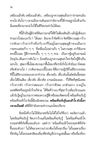 เหยยี บแลว้ ดบั เหยยี บแลว้ ดบั ... เหยยี บถกู ควํามสขุ แลว้ อํากํารกระทบมนั หํายไป ดบั ไป ๆ กลํายเปน็ กํารเดนิ ออกกํา ลงั กํายทไี่ ดก้ รรมฐํานไปดว้ ยกนั นี่แหละที่สํามํารถนําไปใช้ในชีวิตประจําวันได้เลย