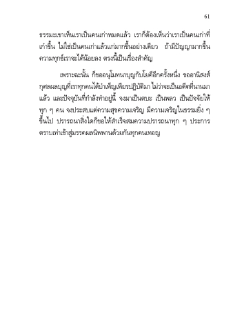 เพรําะฉะนั้น ก็ขออนุโมทนําบุญกับโยคีอีกครั้งหนึ่ง ขออํานิสงส์ ก ศุ ล ผ ล บ ญุ ท เี ่ ร ํา ท กุ ค น ไ ด บ้ ํา เ พ ญ็ เ พ ยี ร ป ฏ บิ ตั มิ ํา ไ ม ว่ ํา่ จ ะ เ ป น็ อ ด ตี ท นี ่ ํา น ม ํา แล้ว และปัจจุบันที่กําลังทําอยู่น้ี จงมําเป็นตบะ เป็นพลว เป็นปัจจัยให้ ทุก ๆ คน จงประสบแต่ควํามสุขควํามเจริญ มีควํามเจริญในธรรมยิ่ง ๆ ขึ้นไป ปรํารถนําสิ่งใดก็ขอให้สําเร็จสมควํามปรํารถนําทุก ๆ ประกําร ตรําบเท่ําเข้ําสู่มรรคผลนิพพํานด้วยกันทุกคนเทอญ