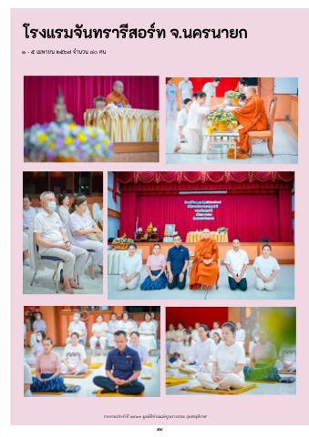 54 โรงแรมจิันท่รารีสอร์ท่ จิ.นครนายก ๑ - ๕ เมษายน ๒๕๖๗ จิําานวัน ๘๐ คน รายงานประจำําาปี ๒๕๖๗ มููลนิธิิท่่านแมู่ครูนราวรรณ กุุลธิรชุุติิภาส