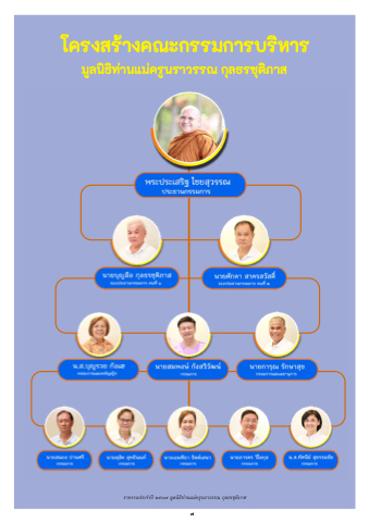 โครงสร้างคณะกรรมการบัริหาร มลู นิธิิท่า่ นแมค่ รูนราวัรรณ กลุ ธิรชุติุ ิภาส รายงานประจำําาปี ๒๕๖๗ มููลนิธิิท่่านแมู่ครูนราวรรณ กุุลธิรชุุติิภาส 7