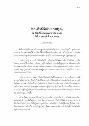 ไม่ว่าจะเป็นอาการทางกาย ไม่ว่าจะเป็นอาการของจิต อาการทางจิต ตัวสภาพจิตเอง และการท่ีเรา กา หนดรแู้ บบน้ี การยกจติ ขนึ้ สคู่ วามวา่ ง และเพอ่ื การกา หนดตอ่ จากบลั ลงั กท์ ผี่ า่ นมา บางคนอาจจะสามารถ ต่อได้ ต่อได้อย่างไร พอยกจิตขึ้นสู่ความว่าง แล้วเป็นความว่างที่ต่อจากบัลลังก์ที่ผ่านมา คือเป็นความว่าง ที่สงบ เป็นความว่างท่ีผ่องใส ยกจิตข้ึนสู่ความว่าง ใส ความสงบ แล้วมีความตั้งมั่นเกิดขึ้น มีพลังเกิดข้ึน ทันที แล้วก็มีอาการเกิดดับ