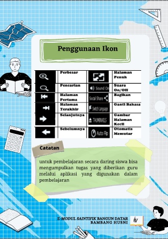 Penggunaan Ikon Catatan untuk pembelajaran secara daring siswa bisa mengumpulkan tugas yang diberikan guru melalui aplikasi yang digunakan dalam pembelajaran E-MODUL SAINTIFIK BANGUN DATAR iv BAMBANG HUSNI