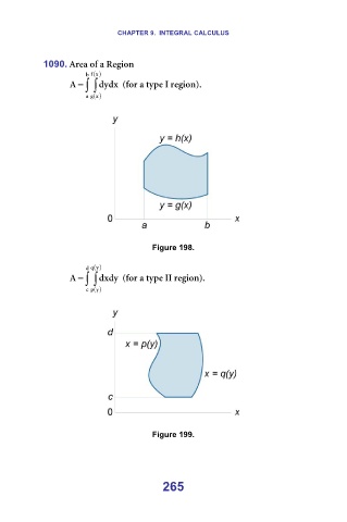 CHAPTER 9. INTEGRAL CALCULUS 1090. ^êÉ~=çÑ=~=oÉÖáçå= Ä Ñ () ñ ^ = ∫∫ ÇóÇñ =EÑçê=~=íóéÉ=f=êÉÖáçåFK= ~ Ö () ñ = = = Figure 198. = Ç è () ó ^ = ∫∫ ÇñÇó =EÑçê=~=íóéÉ=ff=êÉÖáçåFK= Å é () ó = = = Figure 199. = = 265