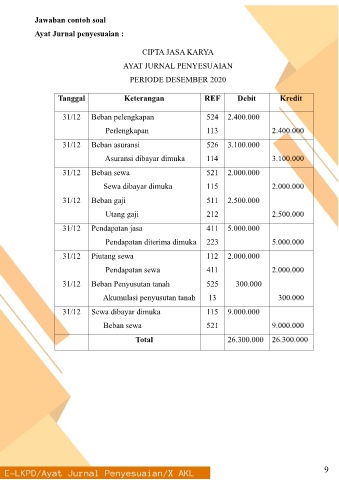 31/12 Sewa dibayar dimuka 115 9.000.000