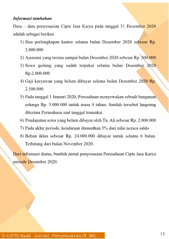 Data – data penyesuaian Cipta Jasa Karya pada tanggal 31 Desember 2020