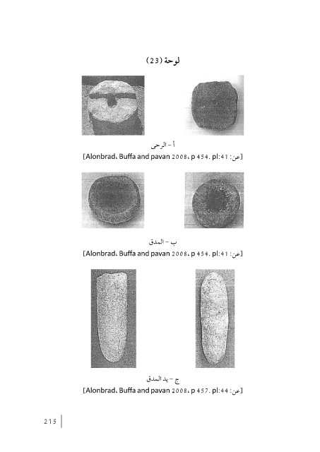 )23( لوحة الرحى- أ ]Alonbrad، Buffa and pavan 2008، p 454. pl:41 :[عن المدق- ب ]Alonbrad، Buffa and pavan 2008، p 454. pl:41 :[عن يد المدق- ج ]Alonbrad، Buffa and pavan 2008، p 457. pl:44 :[عن 215