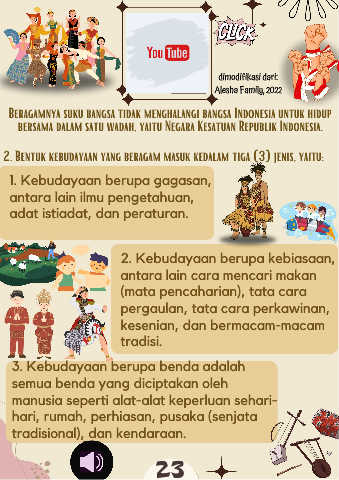 2. Bentuk kebudayaan yang beragam masuk kedalam tiga (3) jenis, yaitu: