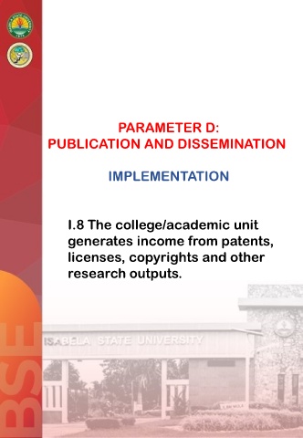 PARAMETER D: PUBLICATION AND DISSEMINATION IMPLEMENTATION I.8 The college/academic unit generates income from patents, licenses, copyrights and other research outputs.