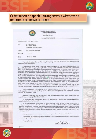 Substitution or special arrangements whenever a teacher is on leave or absent