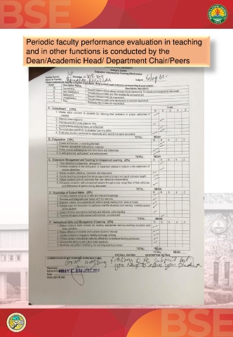 Periodic faculty performance evaluation in teaching