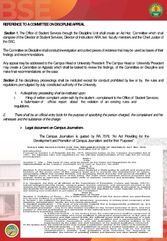 Section 1. The Office of Student Services through the Discipline Unit shall create an Ad Hoc Committee which shall