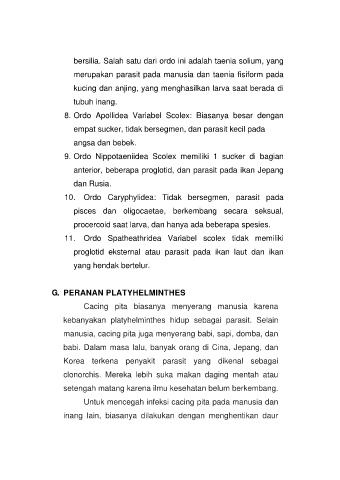 bersilia. Salah satu dari ordo ini adalah taenia solium, yang