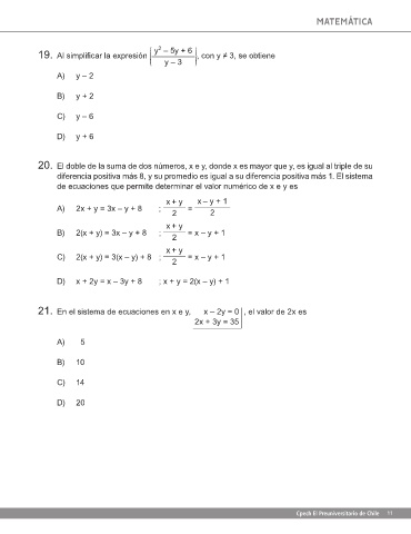 19. Al simplificar la expresión y – 3 , con y ≠ 3, se obtiene